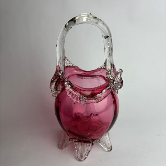 Antique Victorian Cranberry Glass Basket with Applied Feet