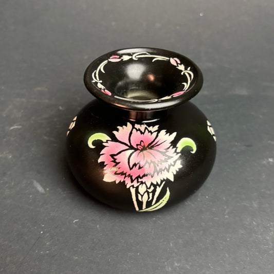 Shelley England Art Deco Black Bud Vase with Hand Painted Floral Design c.1920s