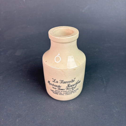 Antique French Mustard Pot “Noël London” Stoneware Advertising Jar 6oz