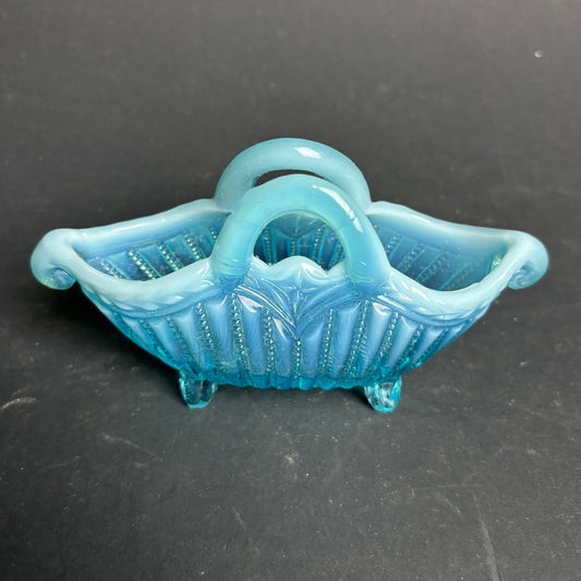 Vintage Blue Opalescent Glass Basket – Footed Bonbon Dish