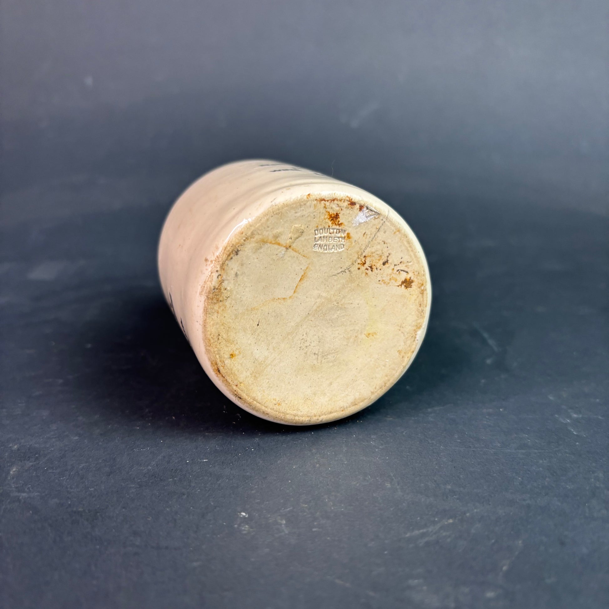 Made by Doulton Lambeth, one of the most respected English potteries, this is a solid example of early 20th century food packaging that now sits comfortably in a collection of kitchenalia or advertising ware.