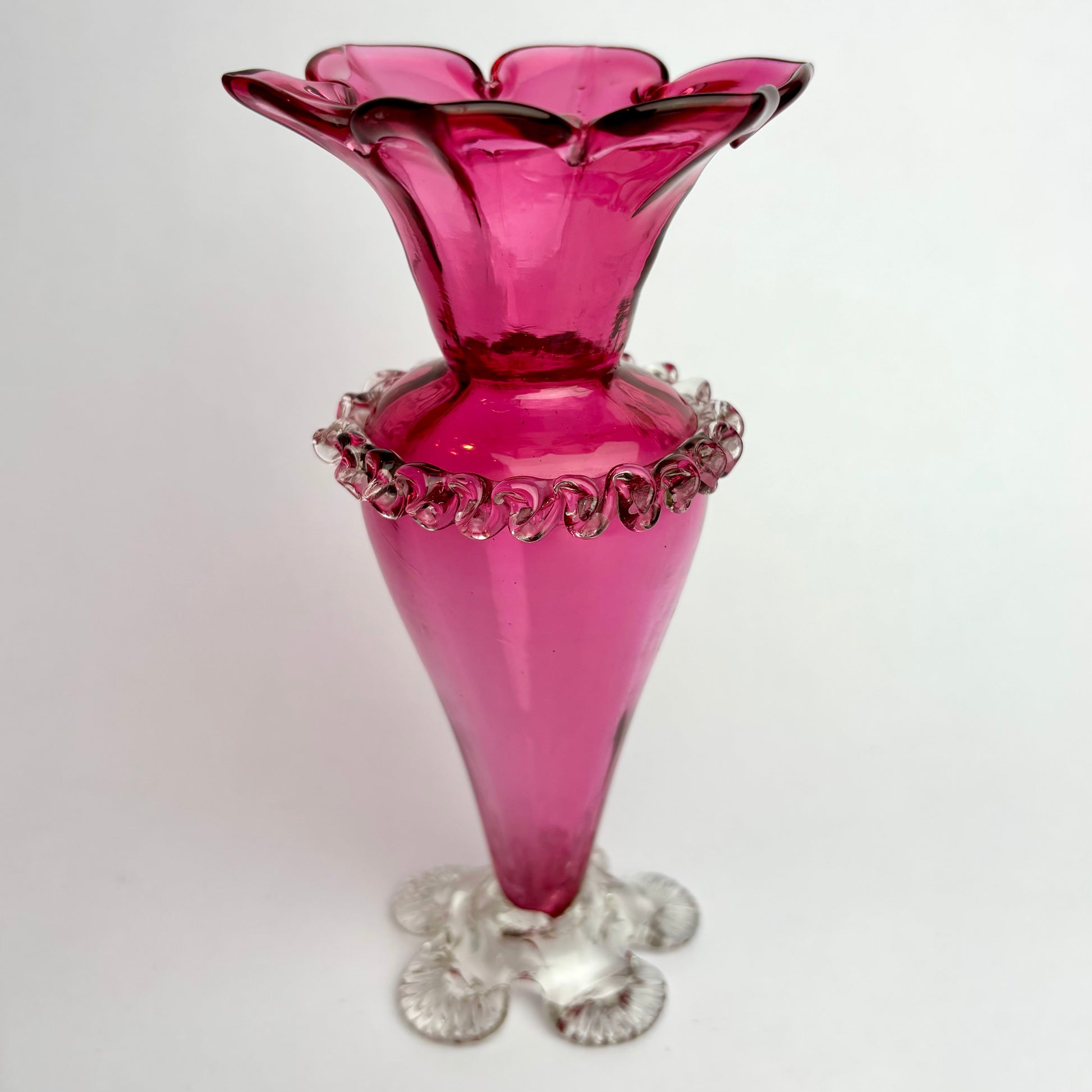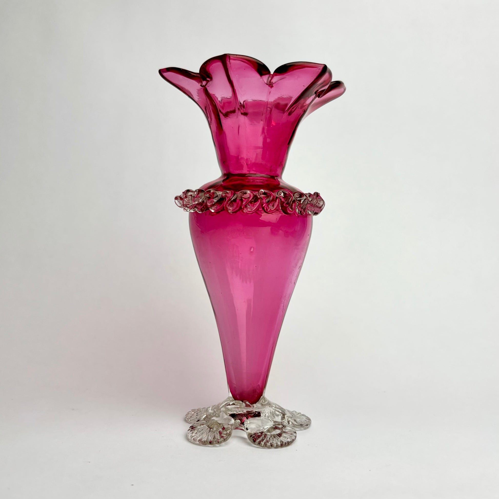 Antique Victorian Cranberry Glass Vase with Rigaree Band