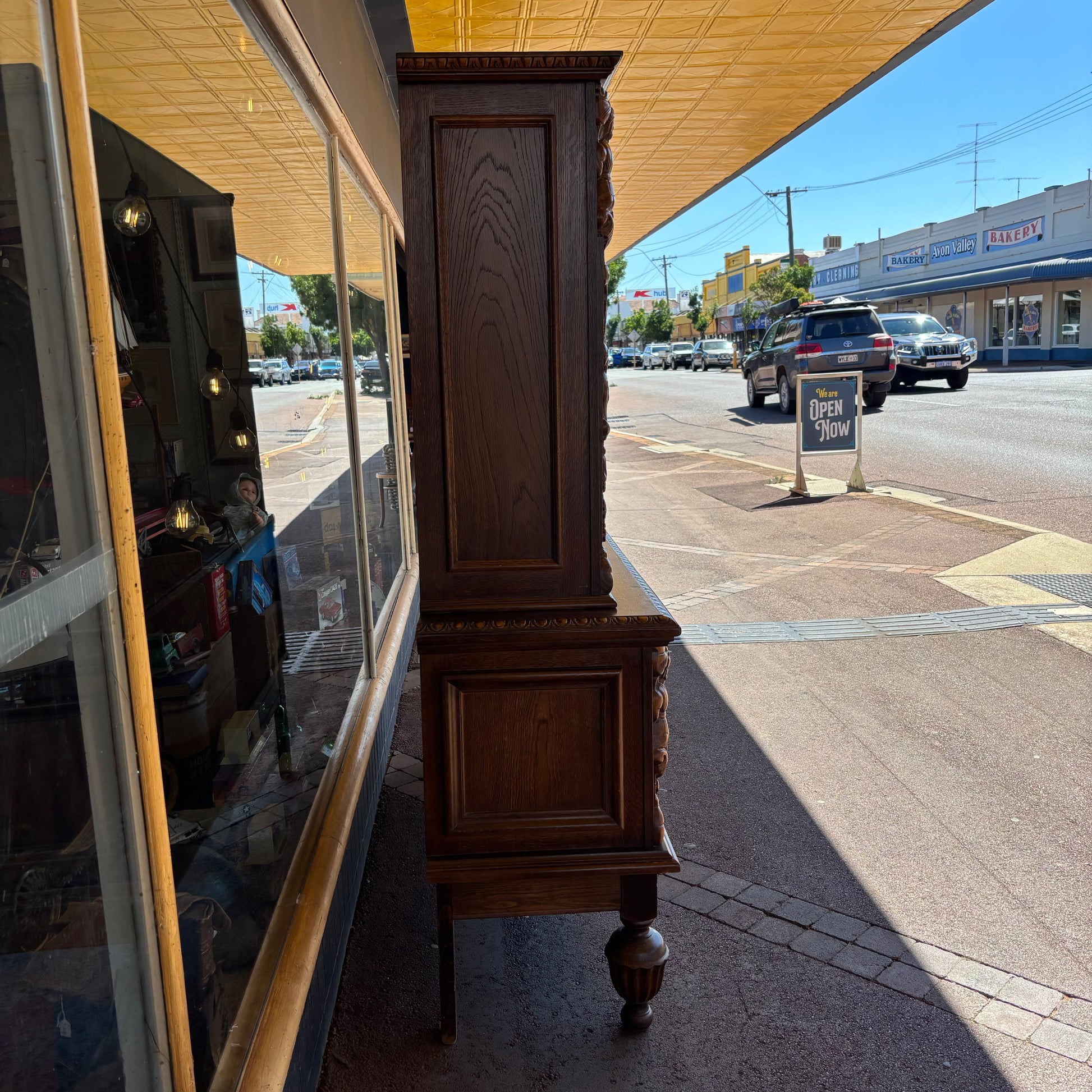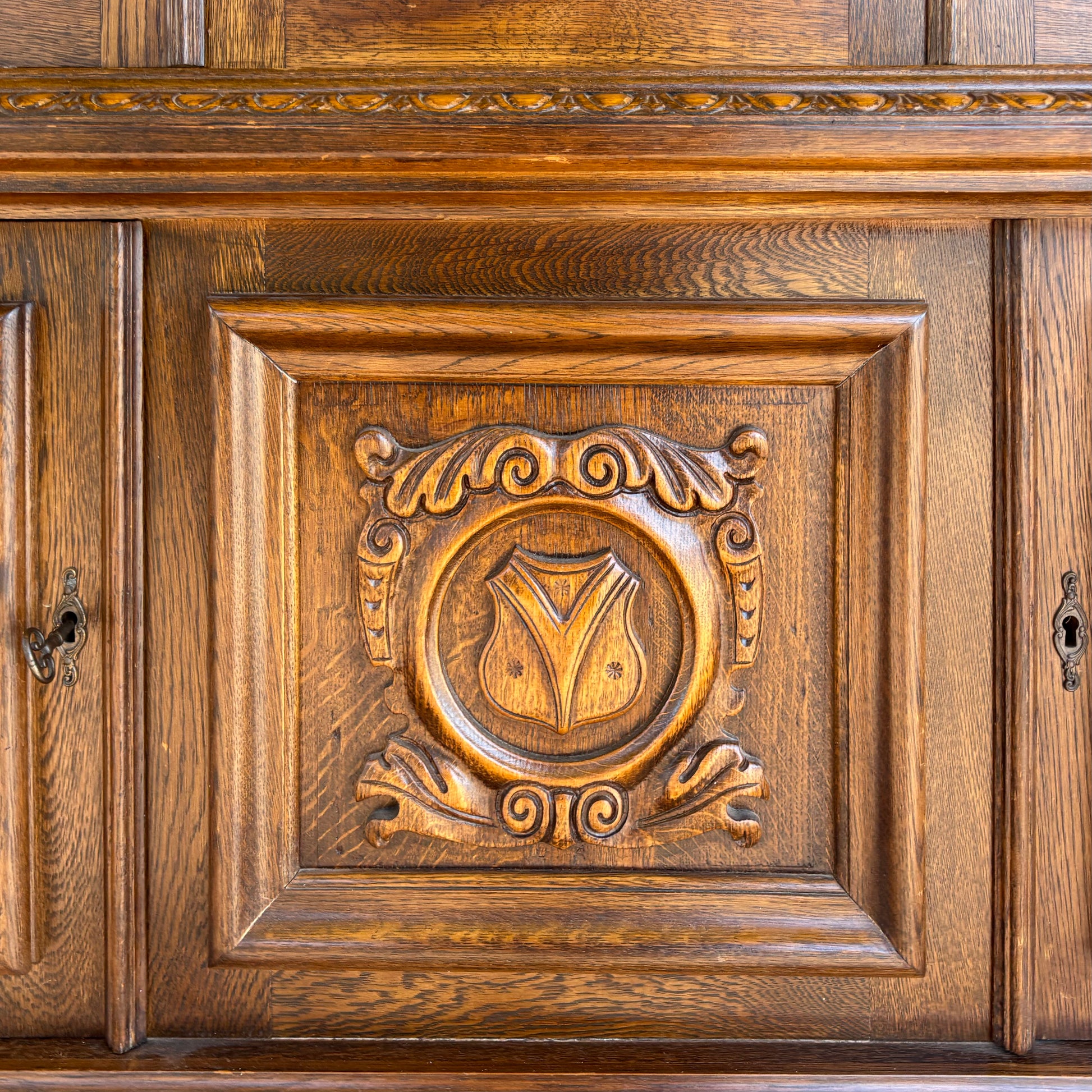This is a strong, architectural piece with real presence — designed to anchor a room and showcase collections beautifully. The warm oak tone, heavy carving and traditional proportions place it firmly within early–mid 20th century Flemish revival furniture.