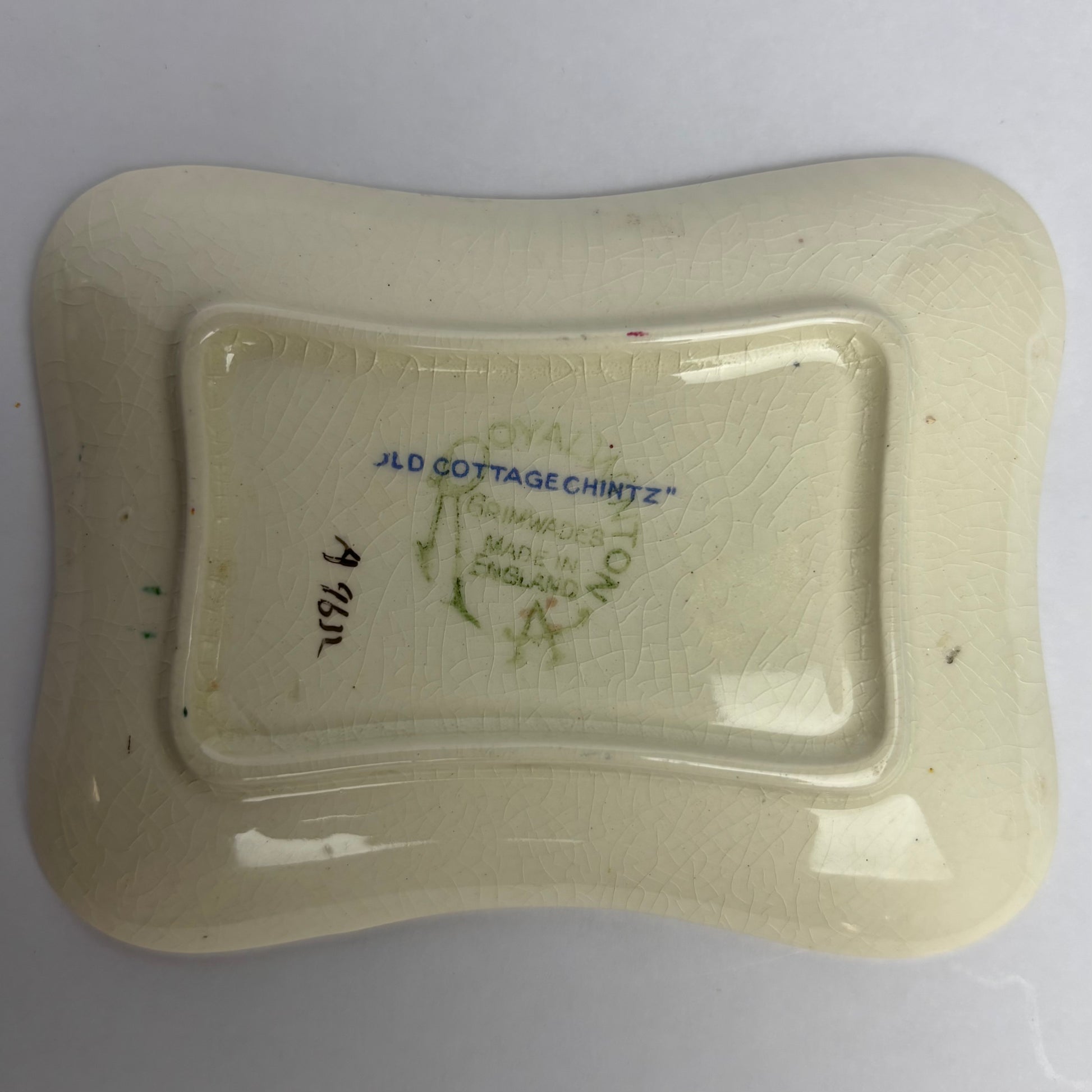 A charming English chintz-pattern pin or trinket tray produced by Grimwades Ltd, Staffordshire, in the popular “Old Cottage Chintz” pattern.