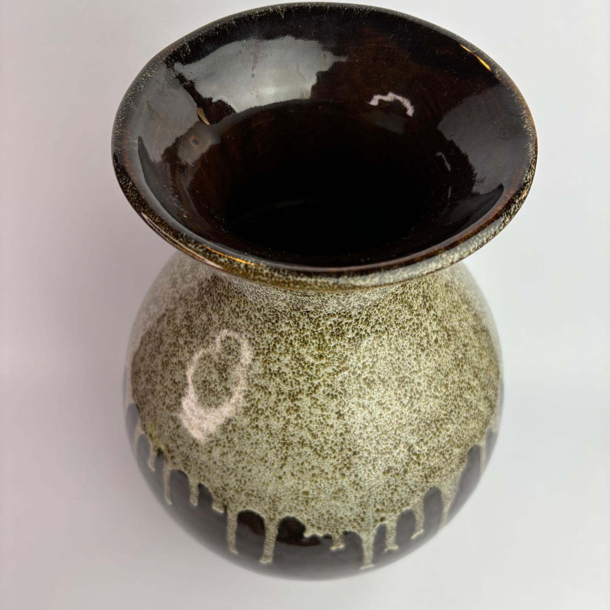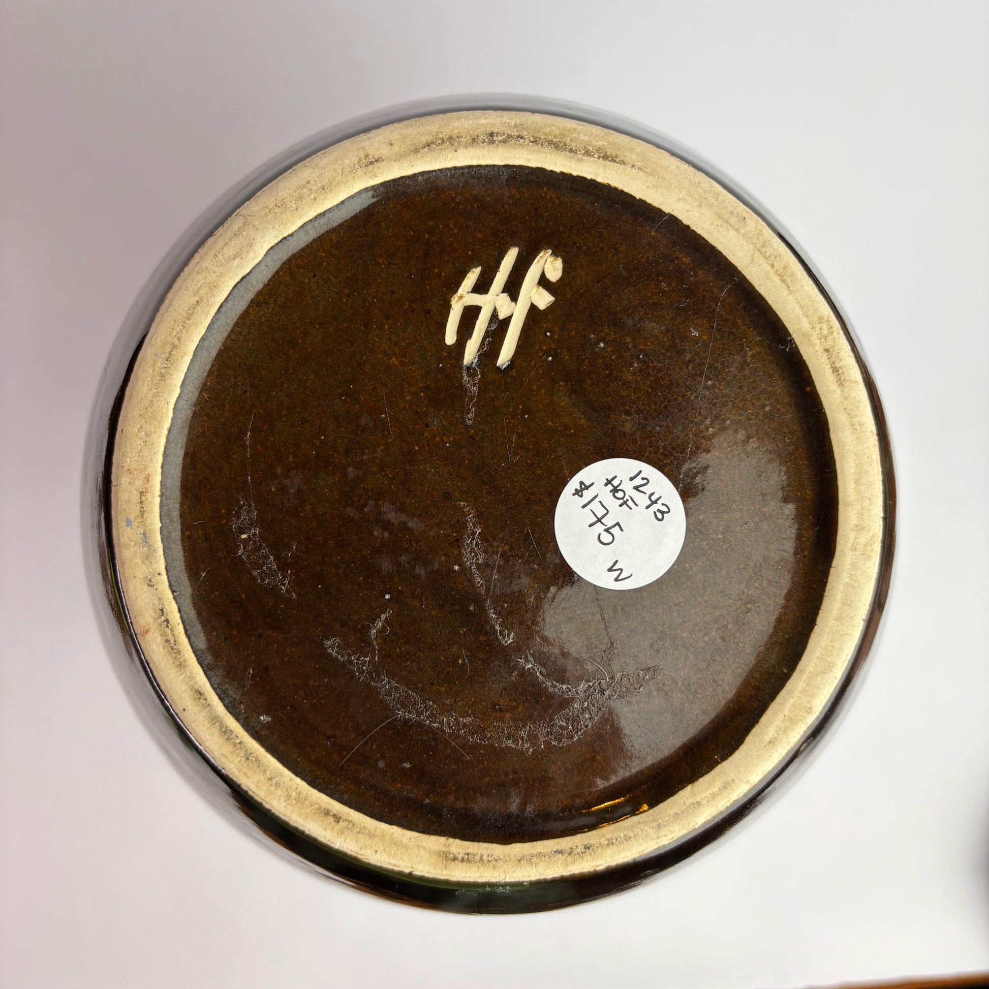The earthy tonal banding and deep interior glaze reflect the restrained modernist aesthetic that defined Höf’s mid-century output. Sculptural, balanced, and highly displayable.
