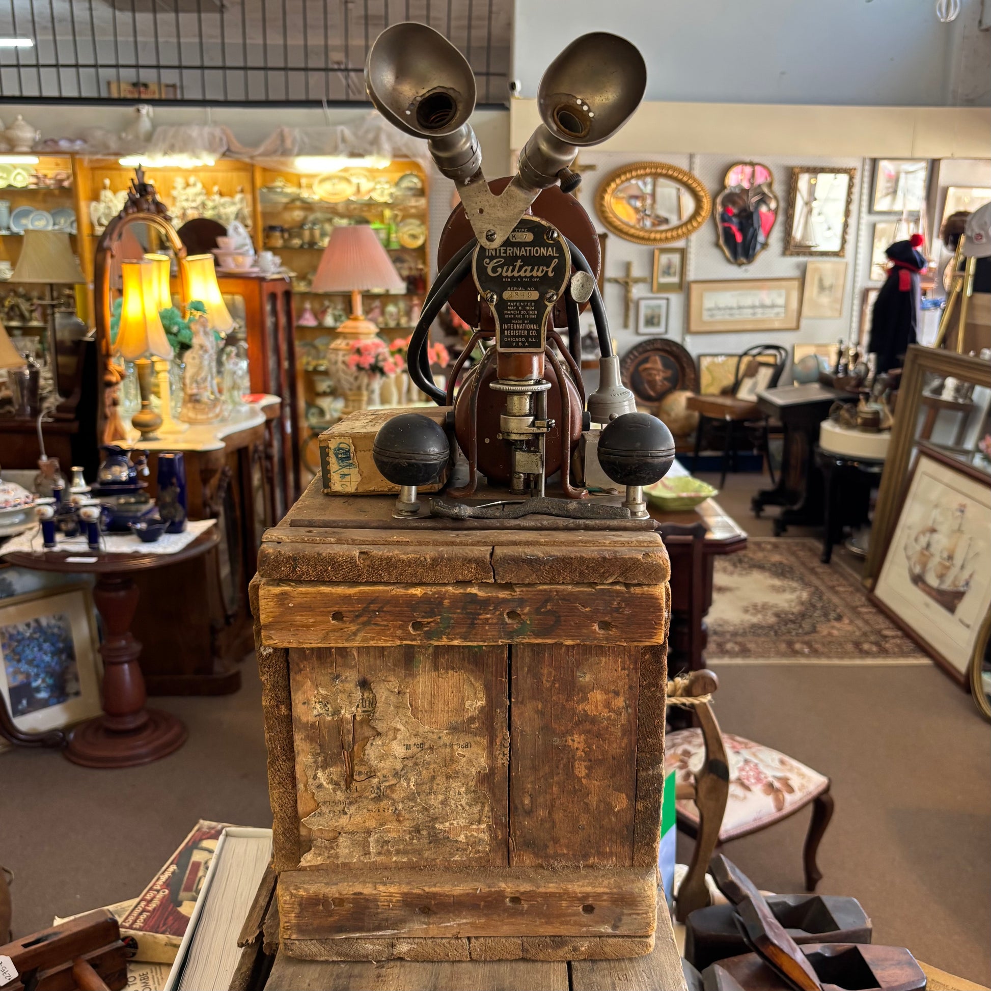 International “Cutawl” Electric Cloth Cutting Machine with Original Crate (c. 1910s–1920s)