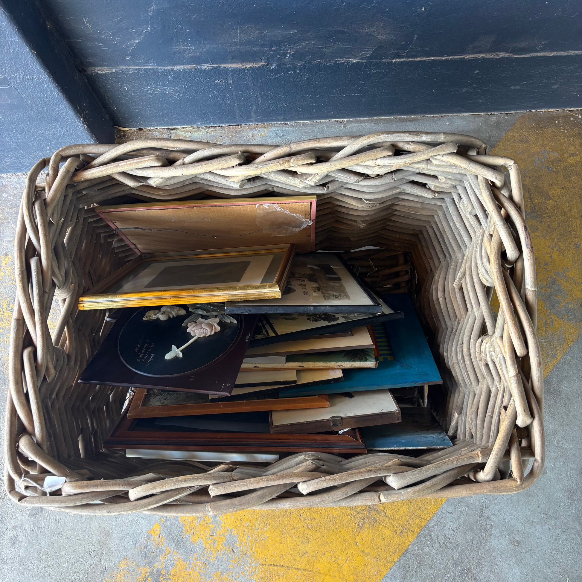 Oversized woven rattan storage basket with classic French farmhouse scale.