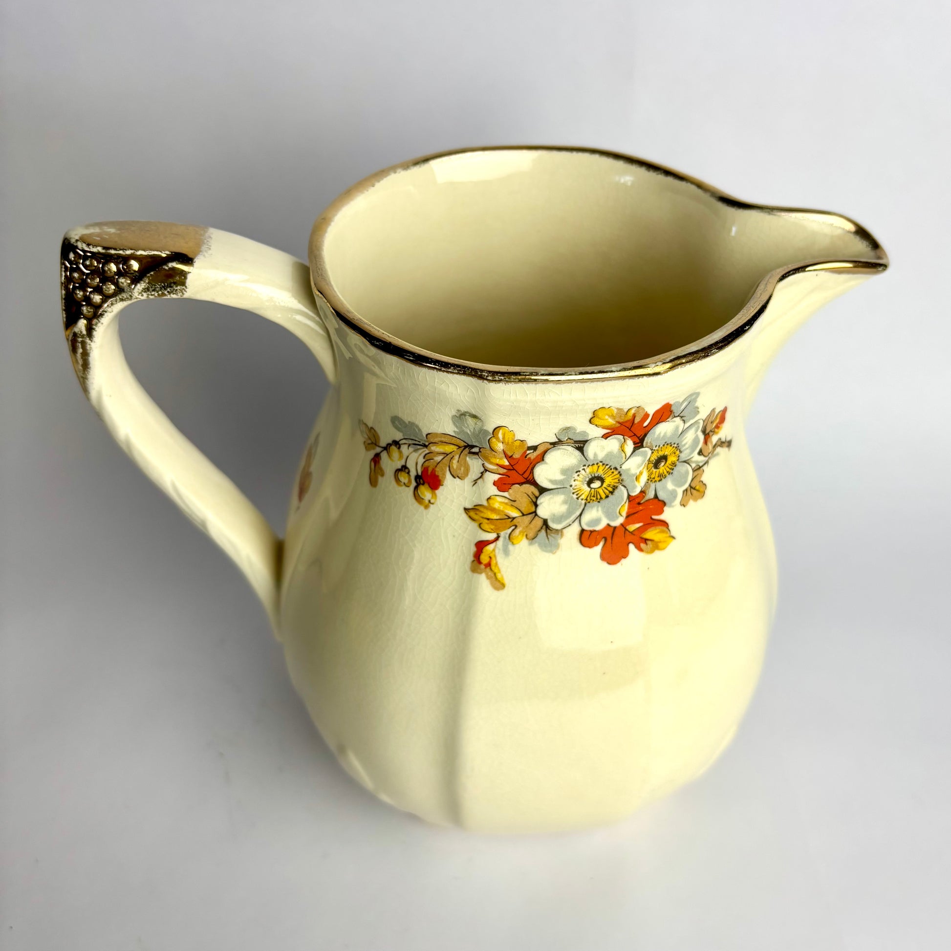 Large Vintage Alfred Meakin Floral Water Jug – Gilt Handle – England c1940s