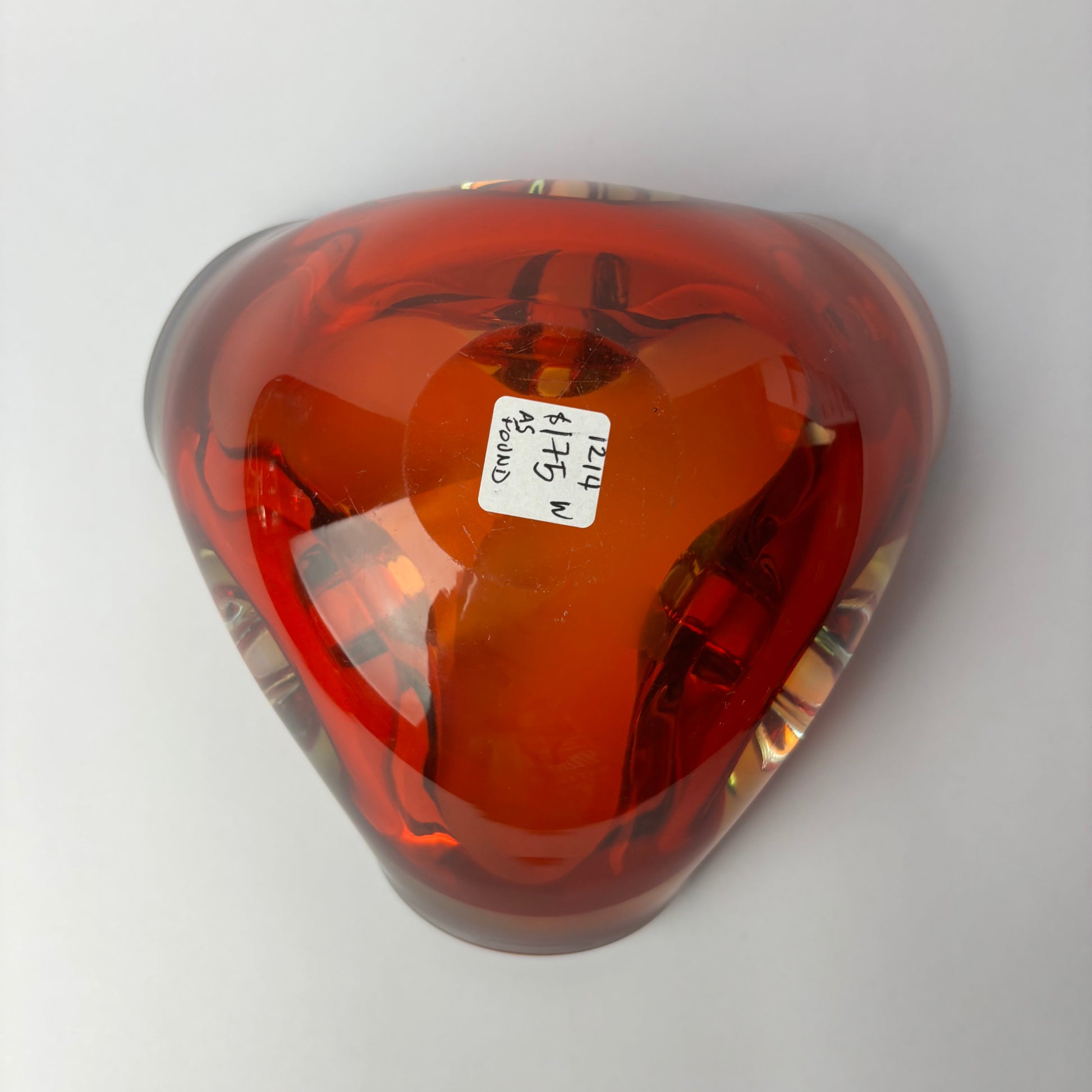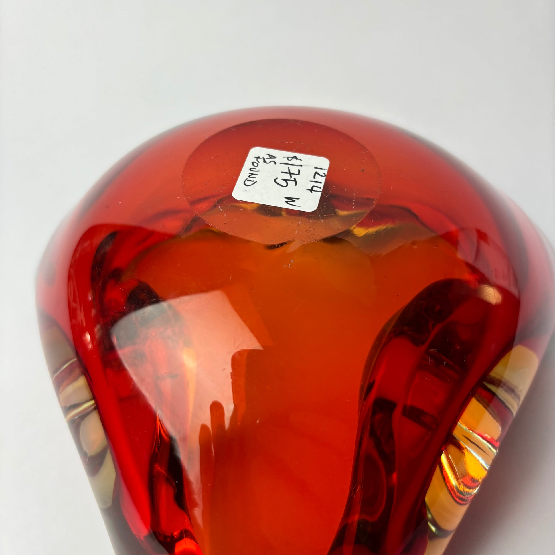 Mid-Century Art Glass Freeform Bowl – Ruby & Amber Sommerso Style