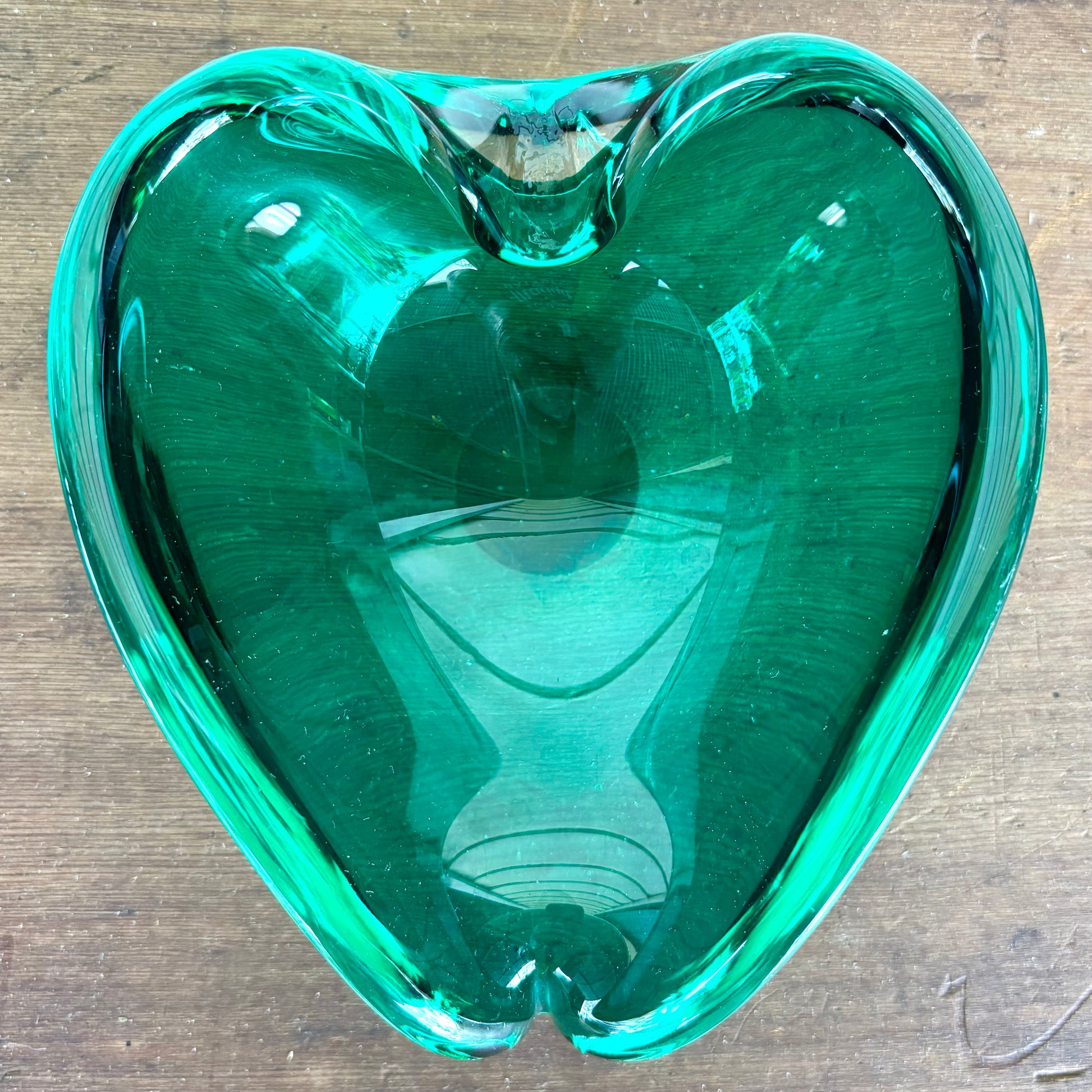 Mid-Century Glass Heart Bowl – Deep Emerald, Murano Style – c.1970s, 1.97 kg