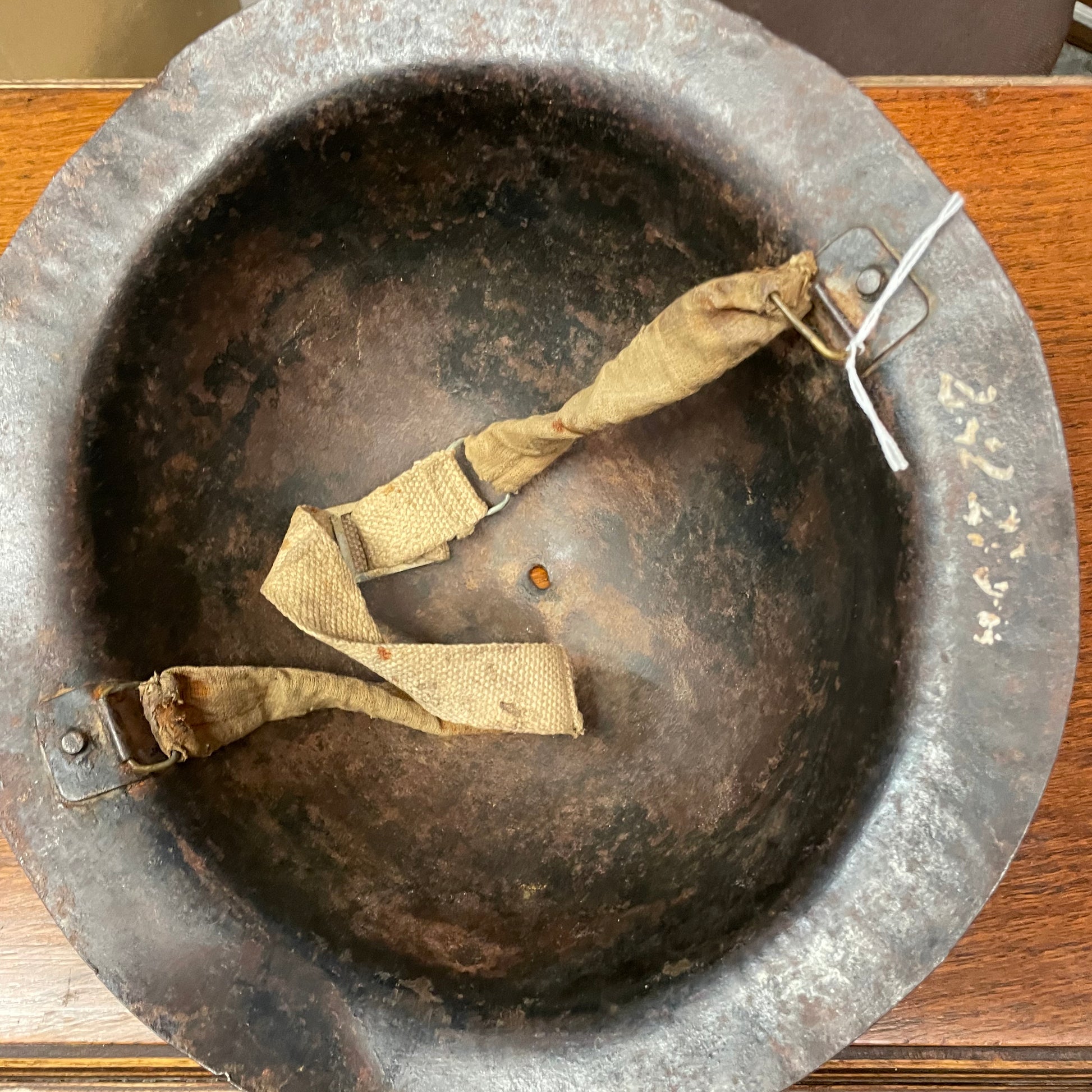 • Authentic WWI/WWII-era military helmet (Brodie style)
