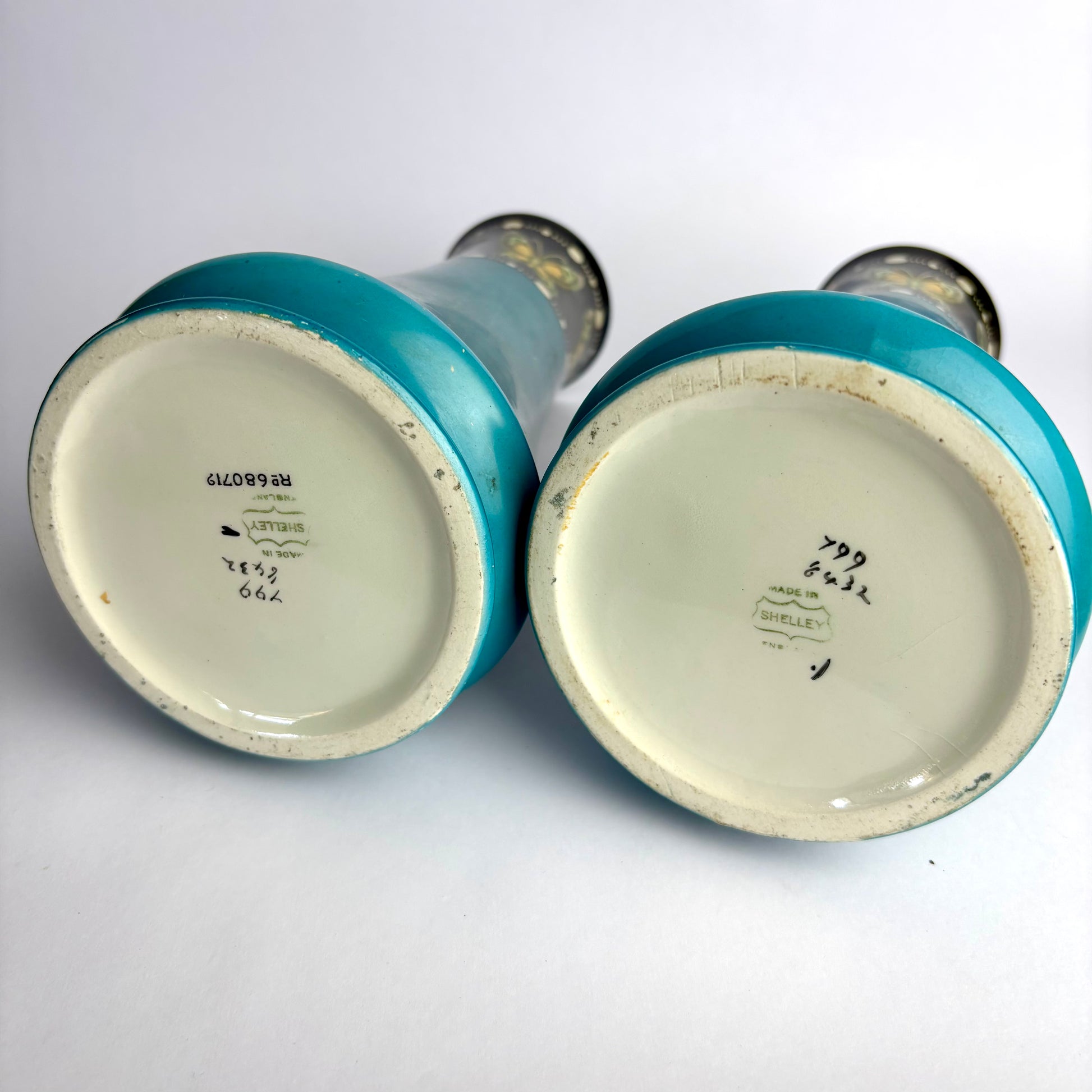 Pair Shelley Vases Pattern 799 – Turquoise Drip Glaze with Butterfly Border – England c1930s