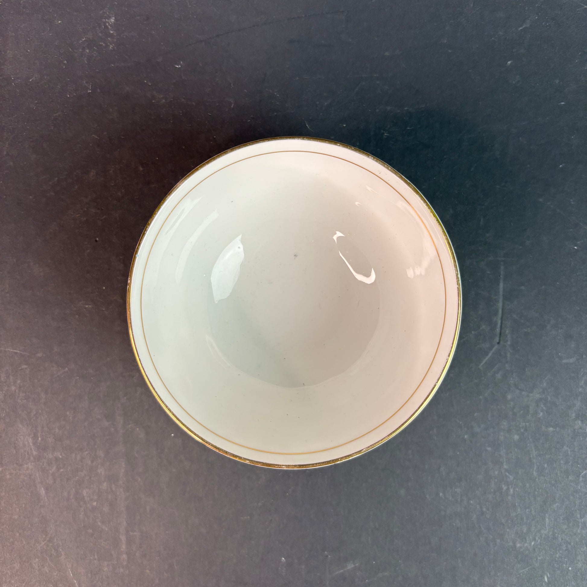 Very good vintage condition. No chips or cracks noted. Light age-related wear to gilt rim and minor crazing consistent with period.
