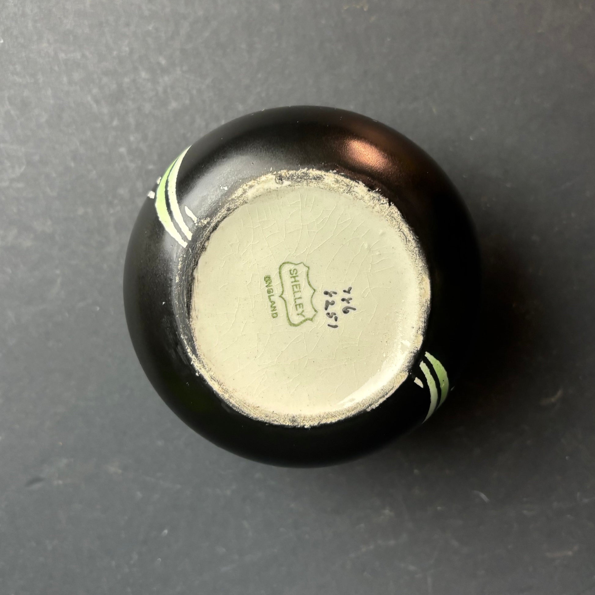 The base carries the Shelley England mark. Pieces of this type were produced as decorative wares during the interwar period and remain popular for their contrast and colour.