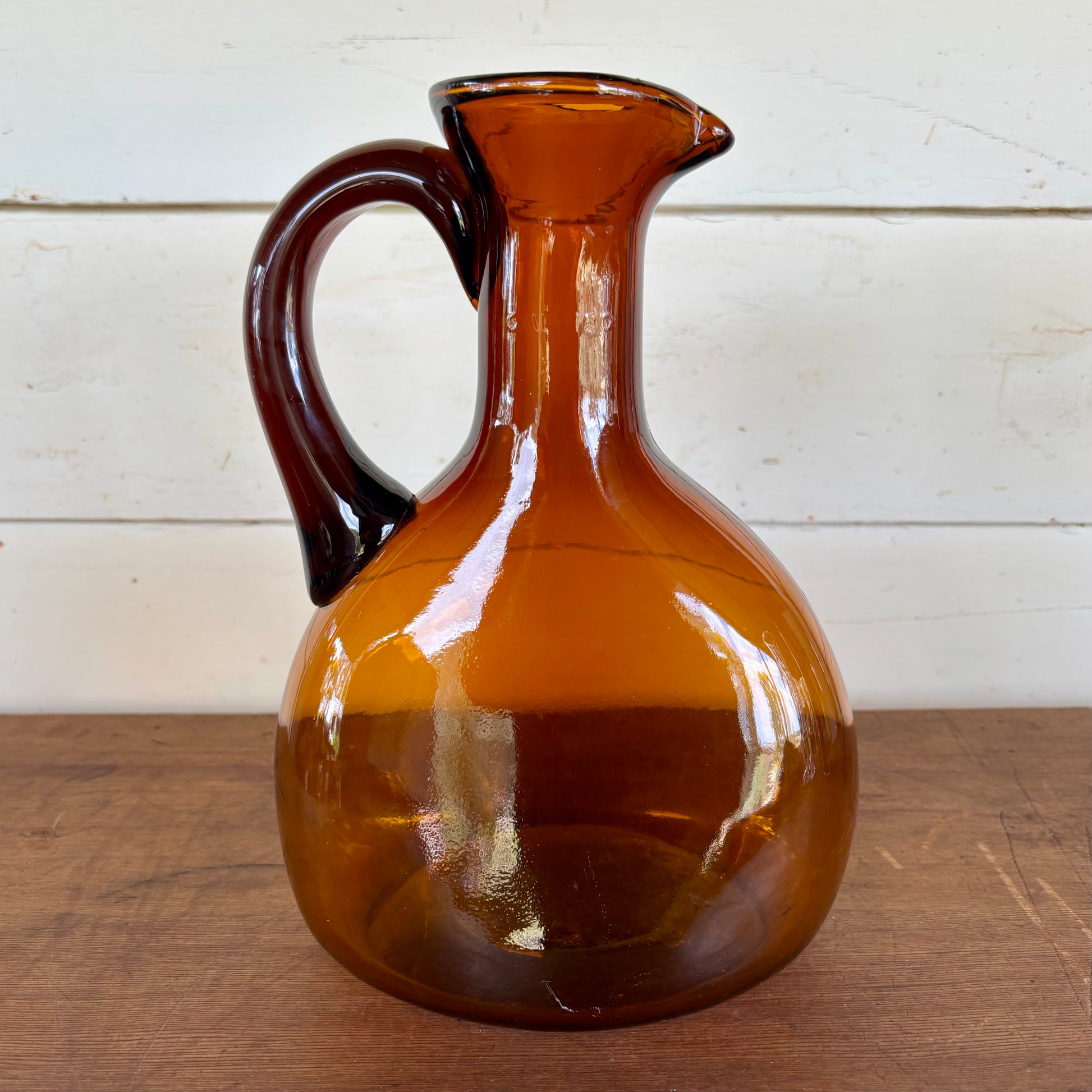 Tall Vintage Amber Glass Jug/Pitcher with Applied Handle (28 cm)