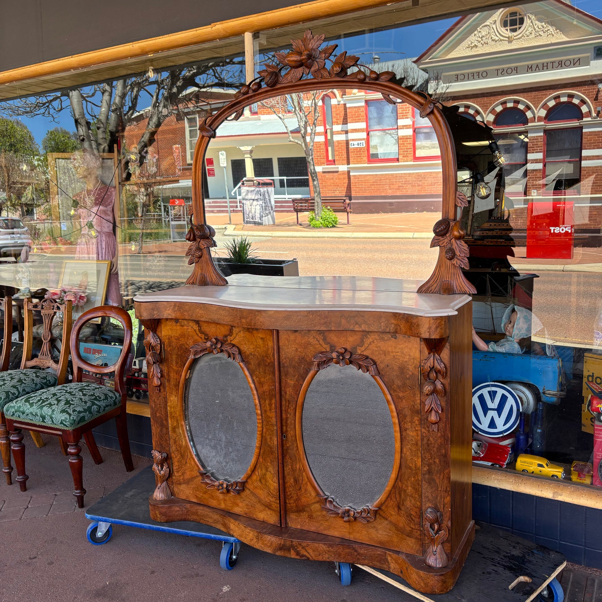 Victorian Burr Walnut Chiffonier with Marble Top & Mirror Back – c.1875