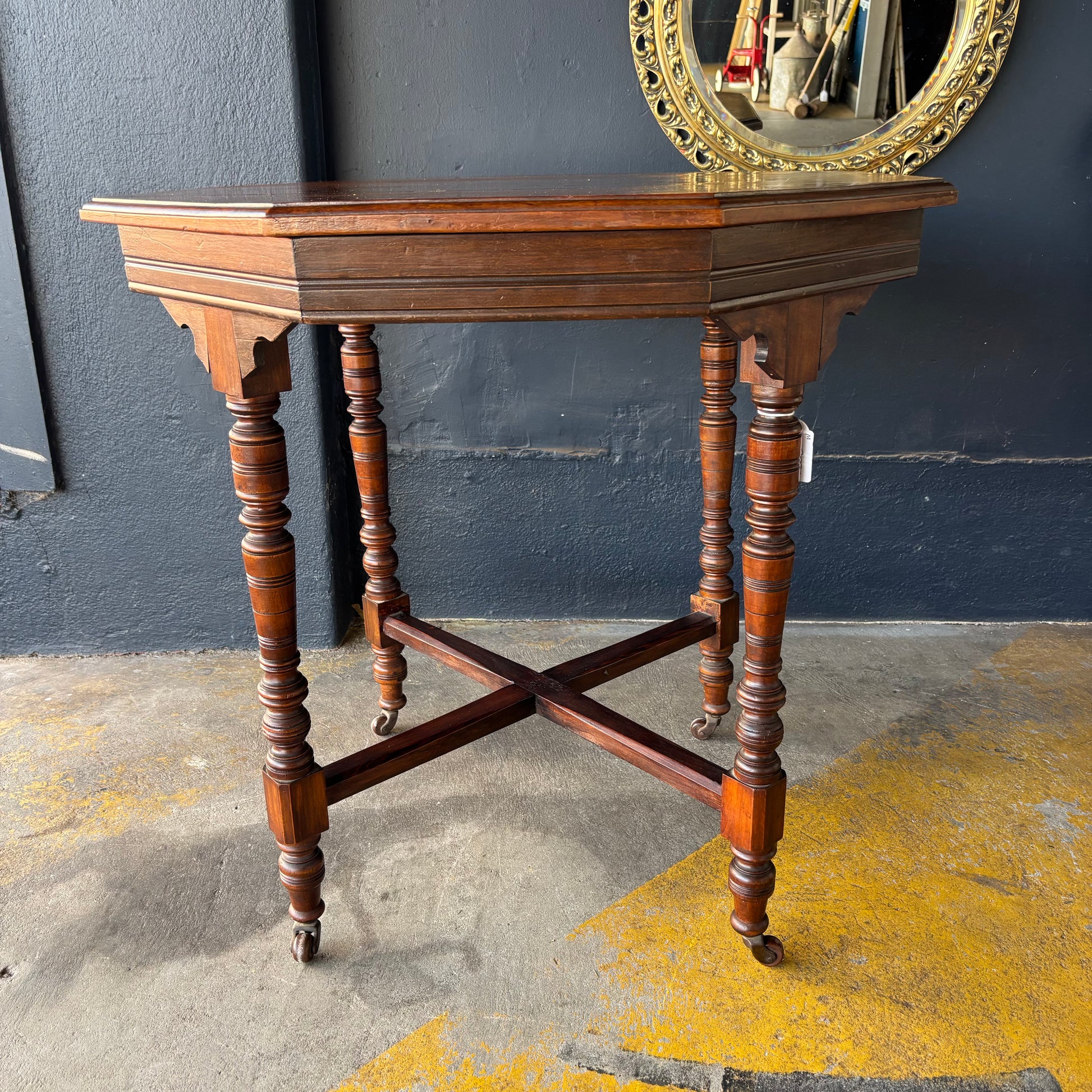 Victorian Octagonal Occasional Table with Turned Legs & Castors c.1890–1910