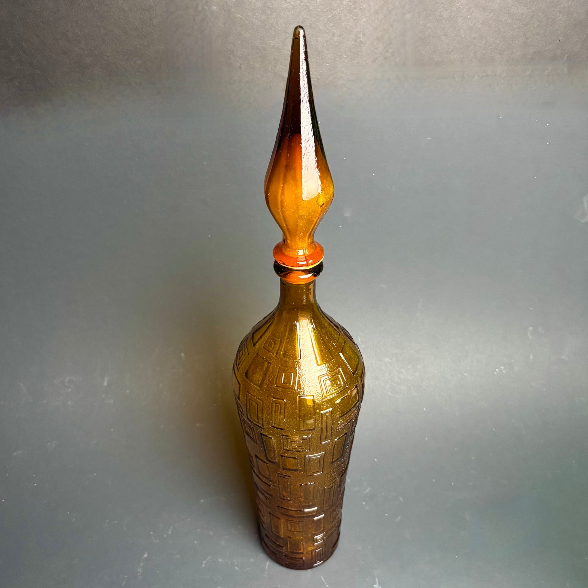 Vintage Amber Empoli Style Glass Decanter with Flame Stopper – Geometric Pattern