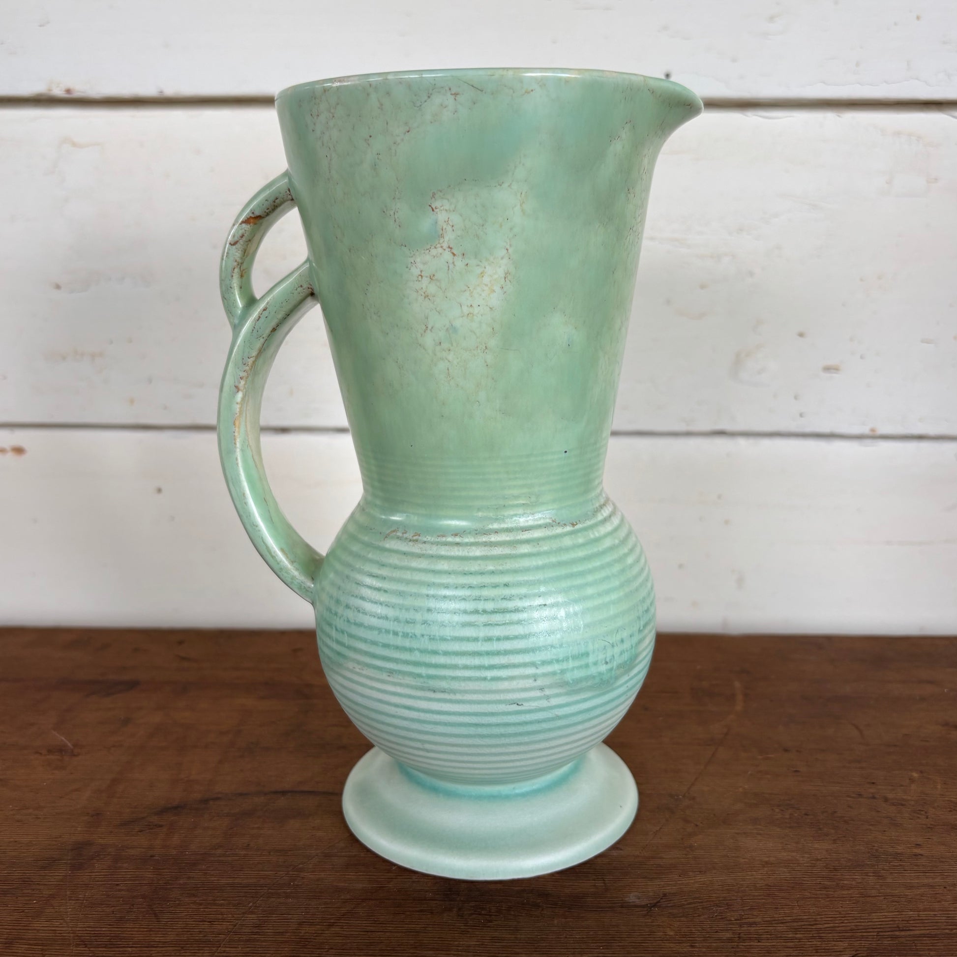 Originally designed as a water or lemonade jug, now ideal for dried or fresh floral display, farmhouse styling, or English Deco ceramics collecting.