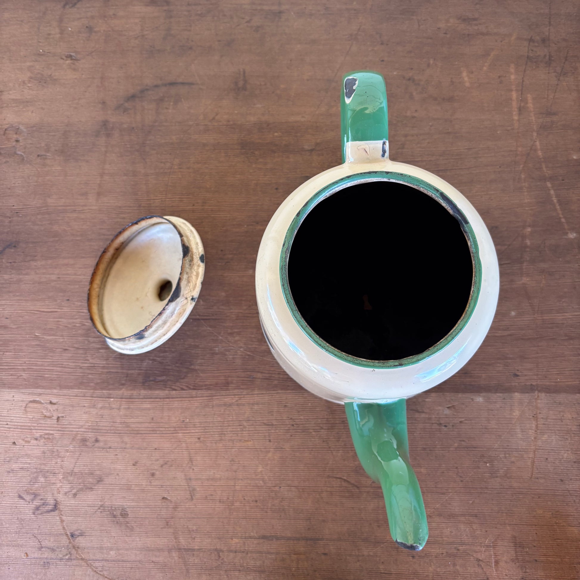 Vintage Enamel Kettle with Green Handle (Medium)