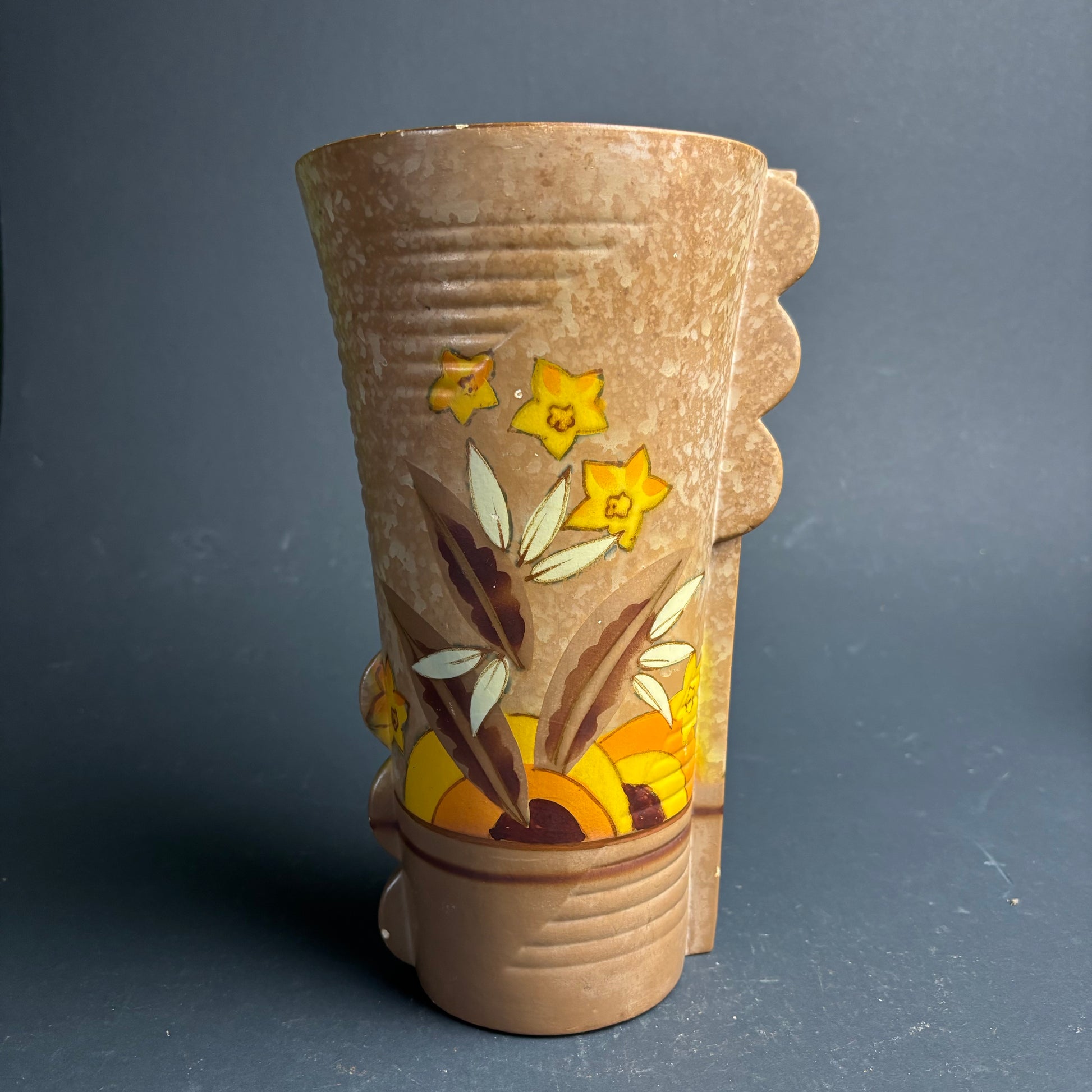 Tall Vintage Brixton Pottery Vase – English Mid Century Floral