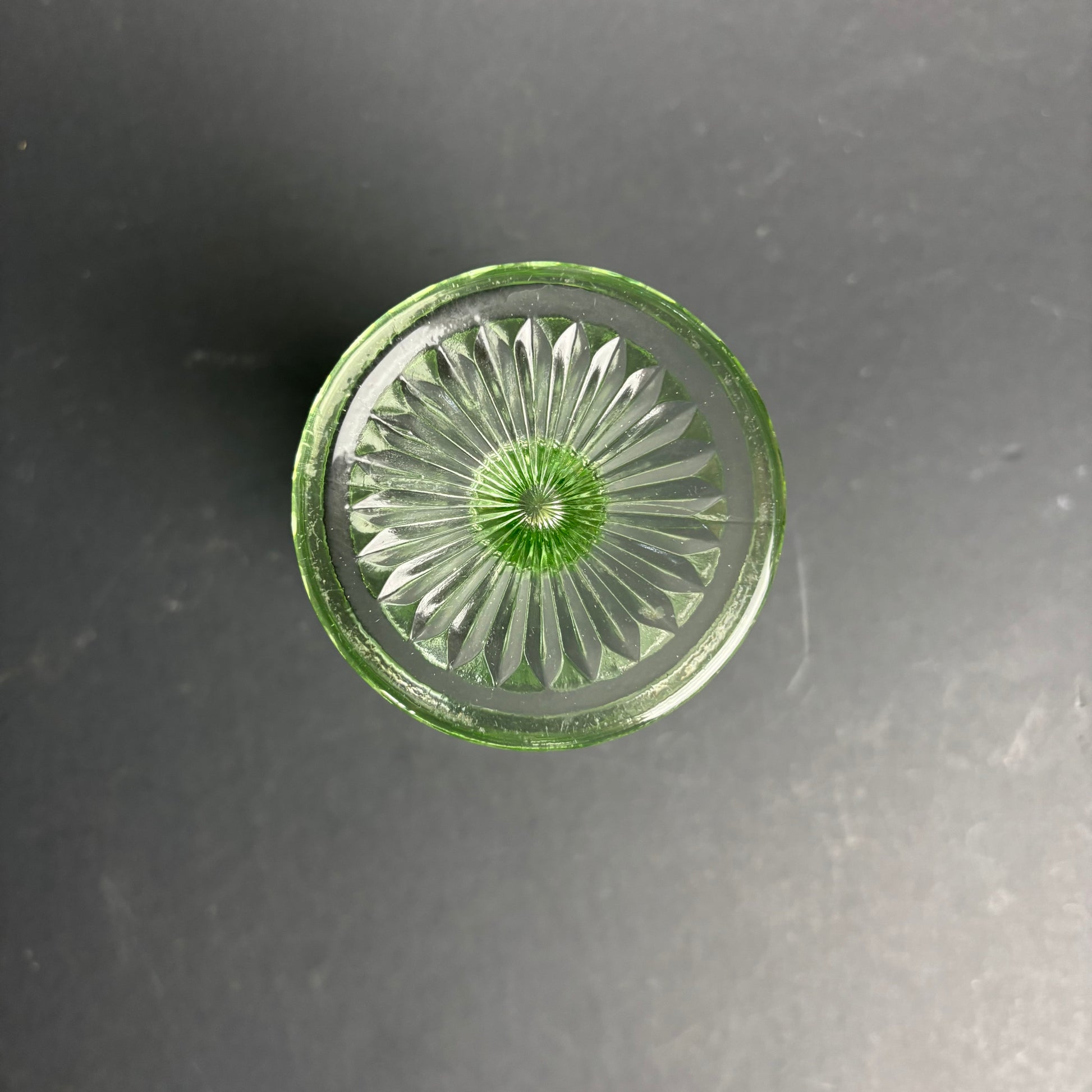 Bright green glass with good clarity and sharp moulding. A standout decorative piece.