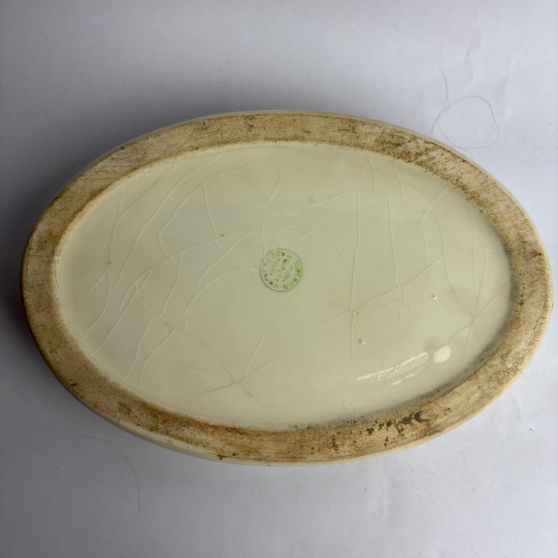 A charming early ceramic Disney child’s feeding dish featuring Mickey and Minnie in classic running pose, with a repeating character border. These were part of the first wave of licensed Disney tablewares produced for export, most commonly out of Japan in the late interwar / immediate post-war years.