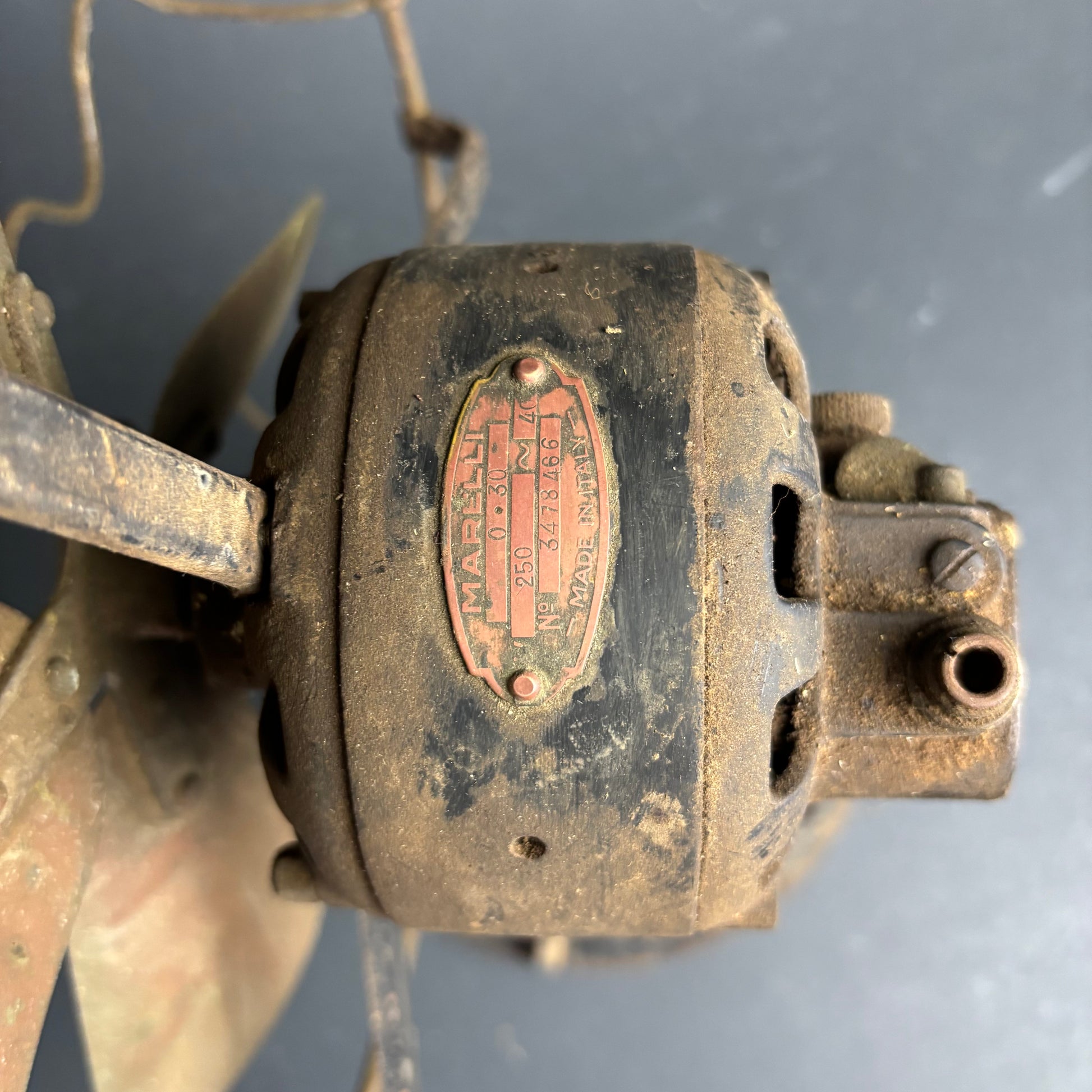 Vintage Marelli Electric Desk Fan Brass Blades Cage Guard Industrial Italy