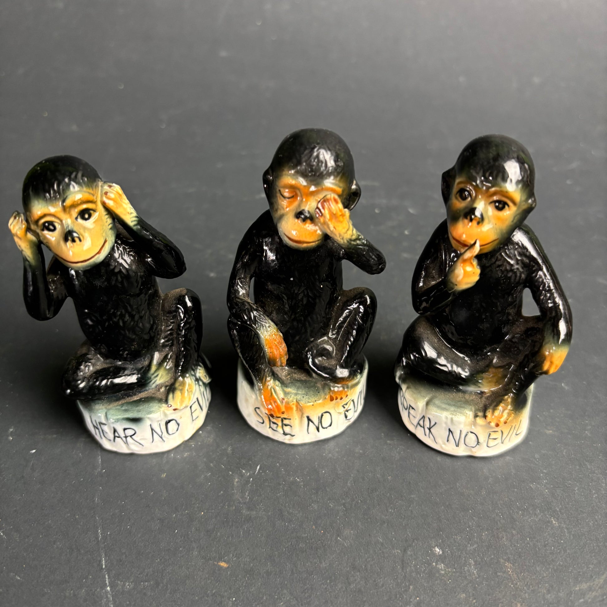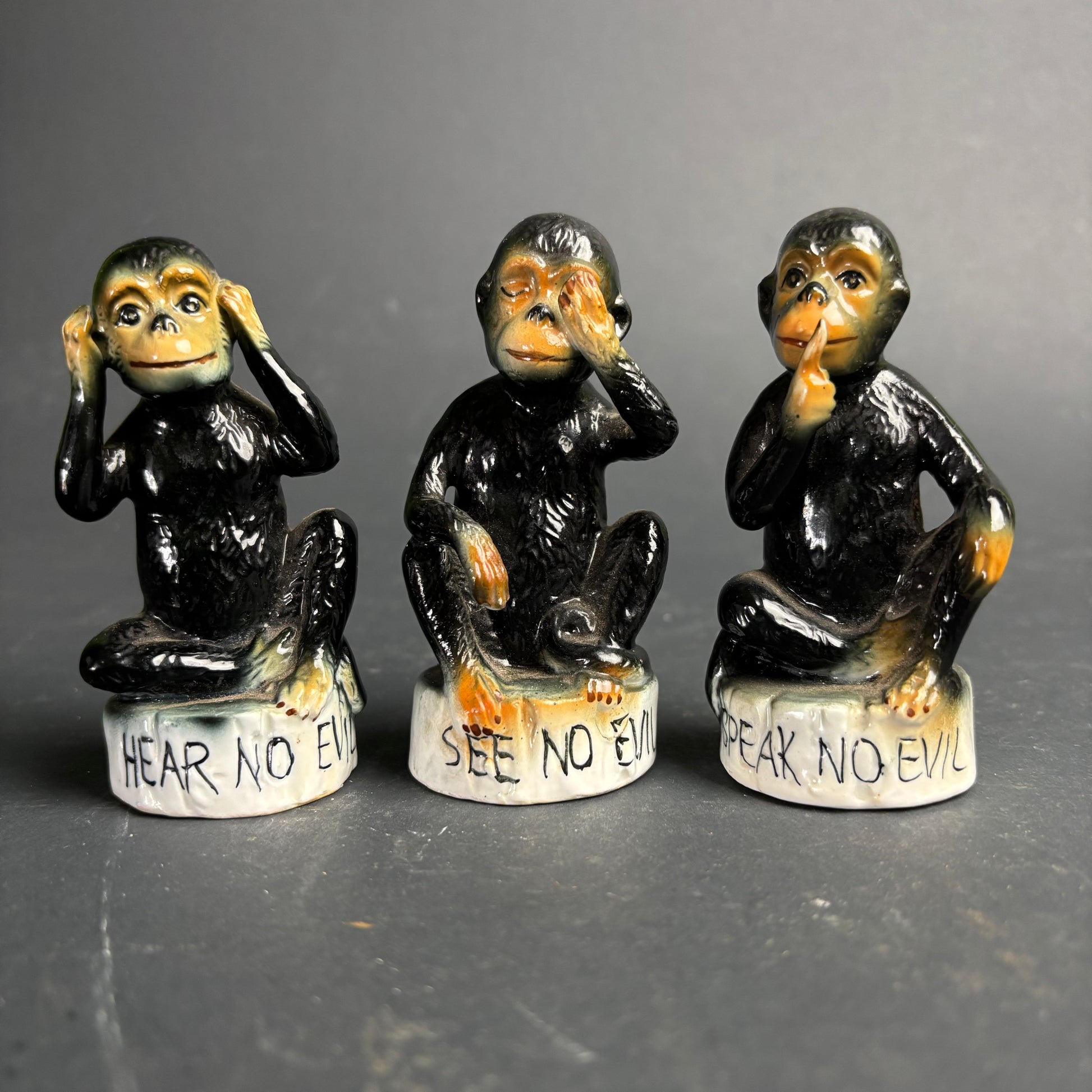 Vintage See Hear Speak No Evil Monkeys – Ceramic Figurine Set