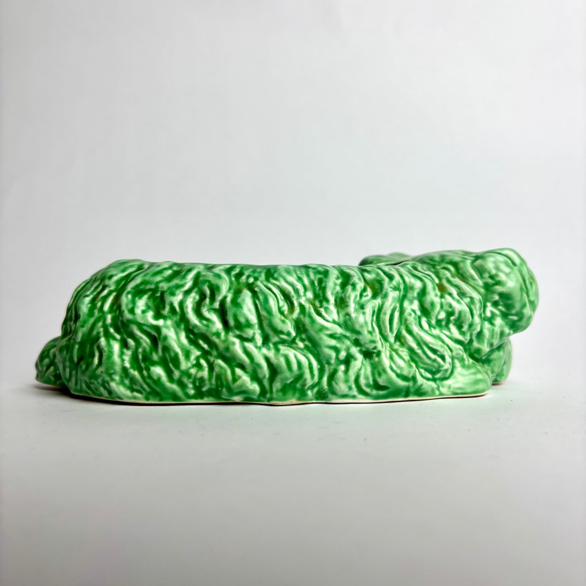 Finished in Sylvac’s distinctive mottled green glaze, this piece shows the expressive modelling and tactile surface that made the company’s animal wares so popular from the 1930s onward. The underside carries the impressed marks “SYLVAC – MADE IN ENGLAND – 2024”, confirming the pattern number.