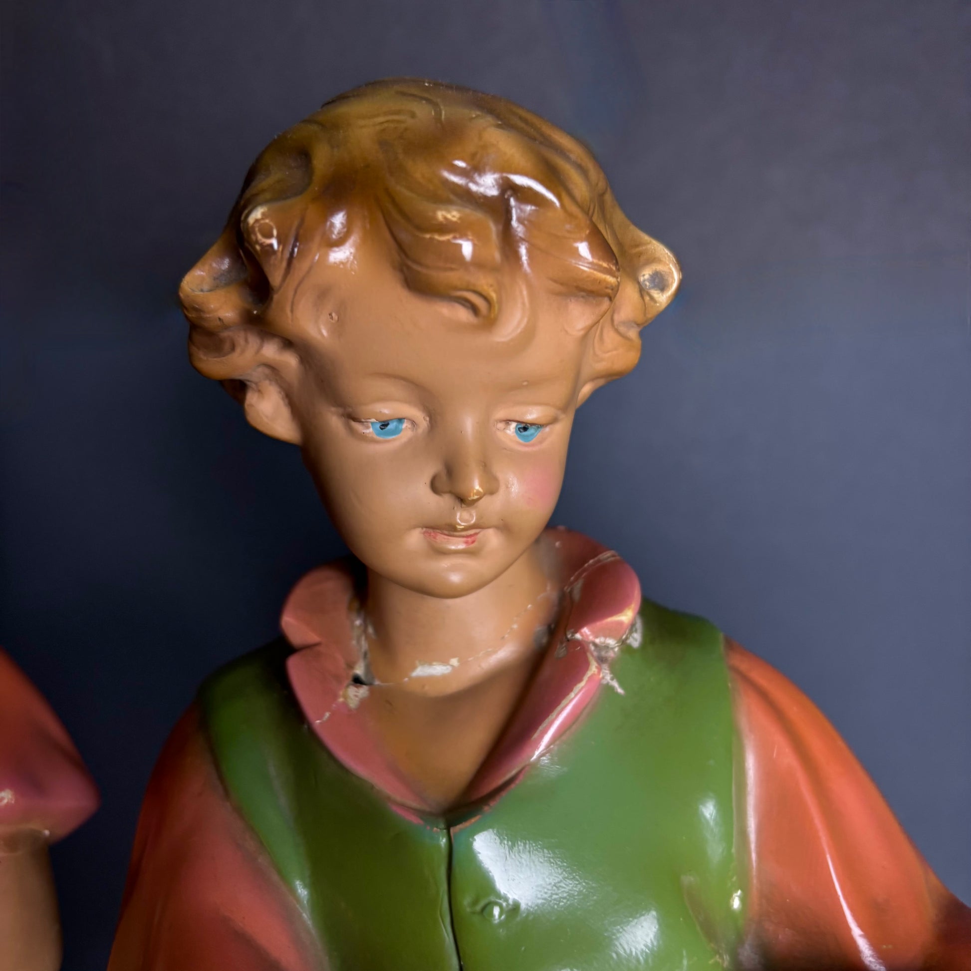 Vintage “The Hawkers” Chalkware Figures – Boy & Girl with Fruit Baskets (Pair)